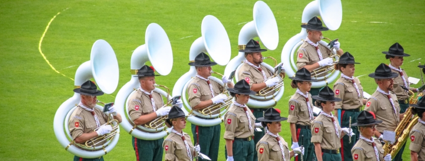 Met maar liefst drie grote optredens vlogen we direct na de zomervakantie uit de startblokken. Allereerst waren we te gast in Neuss, Duitsland, tijdens het grootste schuttersfeest van het Rijnland. Tijdens deze avondparade die met gedempte verlichting in de straten plaatsvindt, zat het tempo er flink in. In anderhalf uur tijd knalden we er meer dan 20 marsen uit.